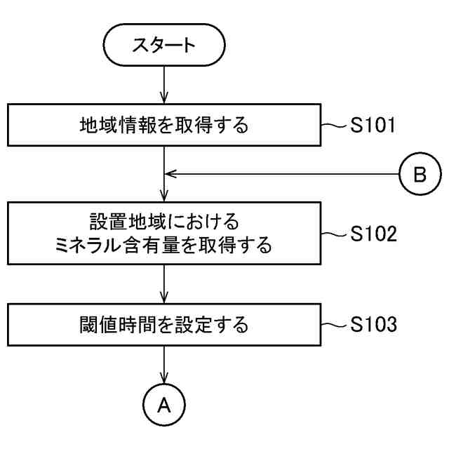 前記水中のミネラル含有量は、前記設置地域における水道水中のミネラル含有量である