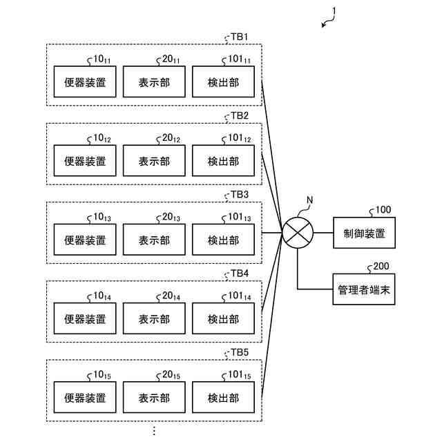 複数の個室トイレの各々に設けられる複数の表示装置に対して、各個室トイレの状態を示す複数の表示態様を設定する表示設定手段と、