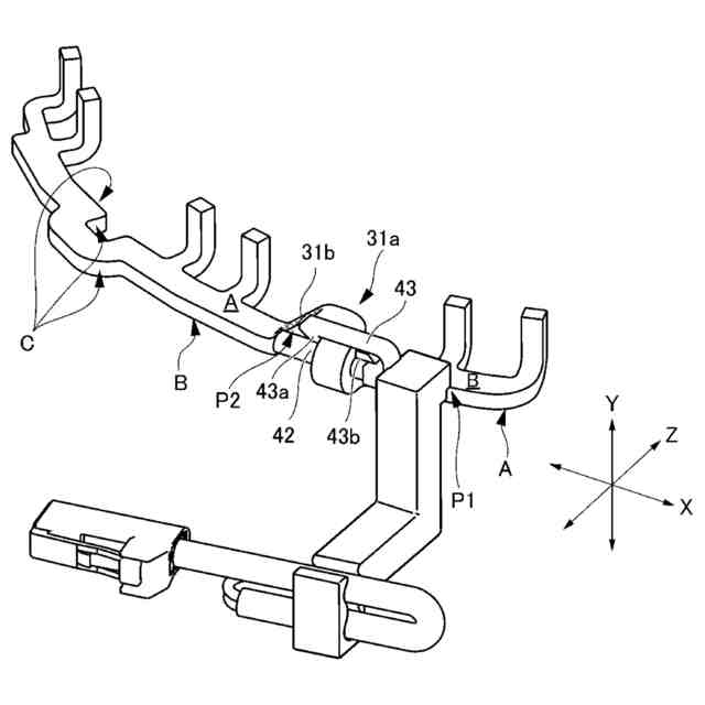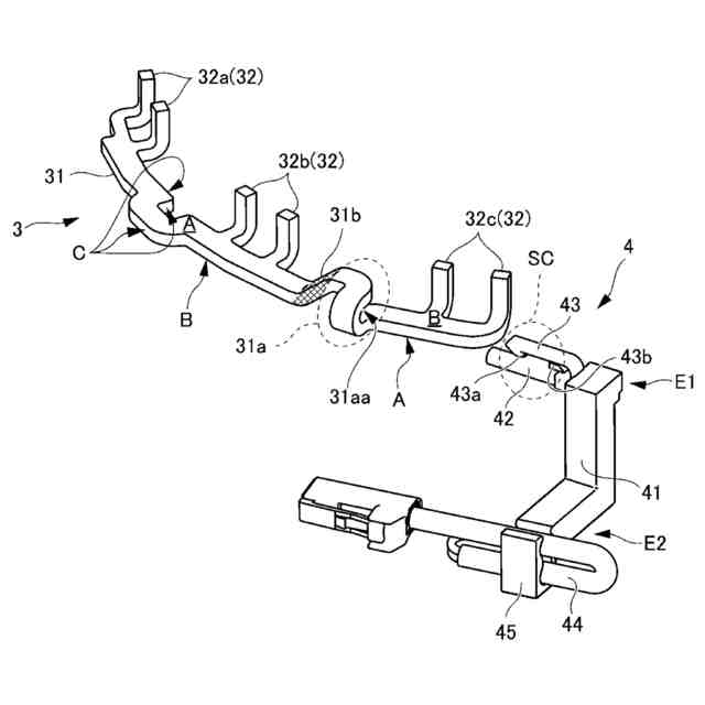 前記第1本体部と前記第2本体部を繋ぐように、前記第1曲げ部の先端側と前記第2曲げ部の先端側を繋ぐ渡り部と、を備え、