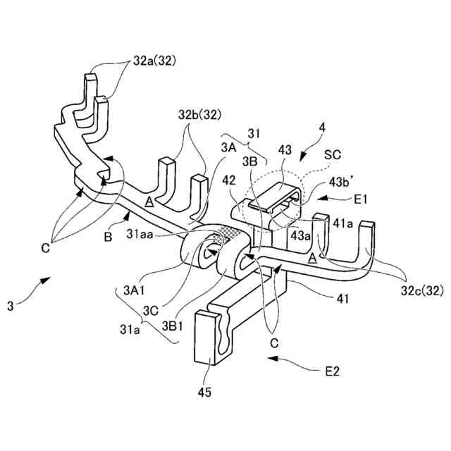 前記中性線本体部は、前記折返し部の一方側に繋がり、前記折返し部に向かうにつれて、傾斜を有する傾斜部を備え、