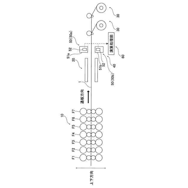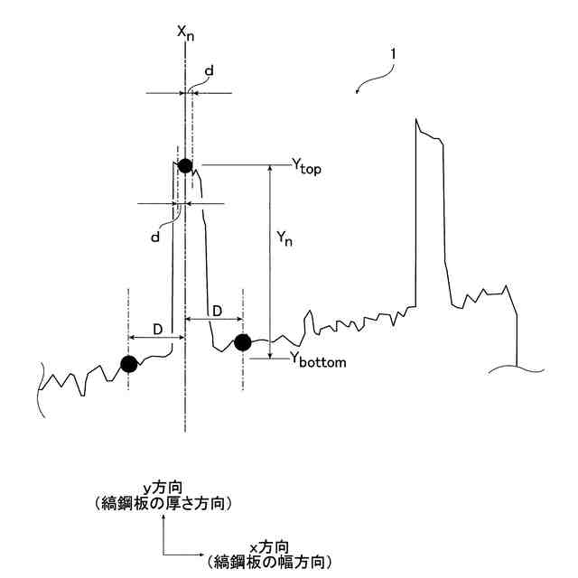縞鋼板における突起部の高さや、縞鋼板の幅方向および長さ方向での突起部の位置は設計上決まっている。つまり、予め決めたパターンで突起部が形成される。縞鋼板の突起部の高さや位置が設計通りに形成されていることを保証するために、縞鋼板の突起部の高さや位置をオンラインで測定する方法が従来検討されている。その一例が特許文献1や特許文献2に記載されている。なお、縞鋼板の突起部の高さや位置をオンラインで測定するとは、縞鋼板を製造する熱間圧延ラインにおいて、縞鋼板の突起部の高さや位置を測定することを意味している。