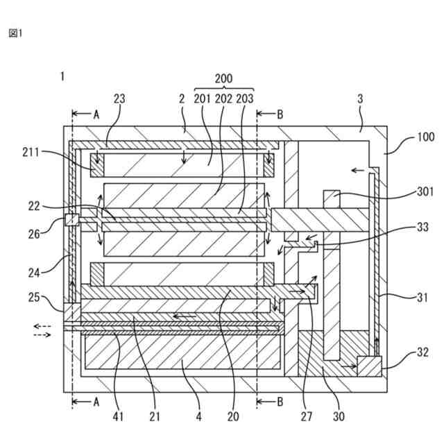 図1に示した機電一体型駆動装置のB-B線断面を示す断面図である。