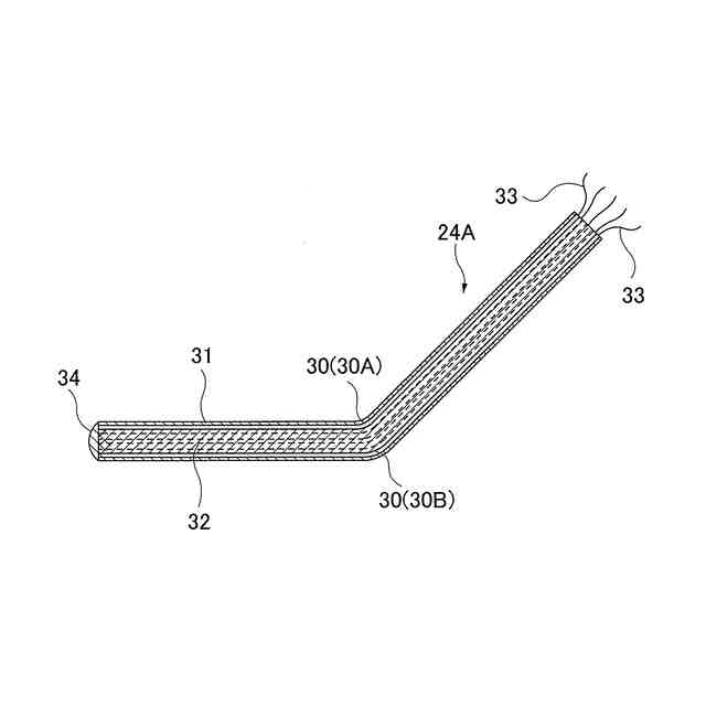 前記穿孔情報検知プローブが途中で折れ曲がった状態では、この折れ曲がり部分の外周側に配置された前記伸縮性抵抗体の曲率半径が、内周側に配置された前記伸縮性抵抗体の曲率半径より大きくなることにより、外周側に配置された前記伸縮性抵抗体の抵抗値が、内周側に配置された前記伸縮性抵抗体の抵抗値より大きくなることを利用して、折れ曲がり方向が検知できるようになっている請求項1記載の穿孔情報検知装置。