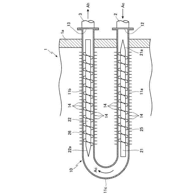 従来から、炉内雰囲気の温度を下げるため、一端側の導入口から冷却用気体をチューブ内に導入させ、チューブ内で熱交換されて加熱された加熱気体を他端側の排出口から排出させるようにしたクーリングチューブが使用されている。