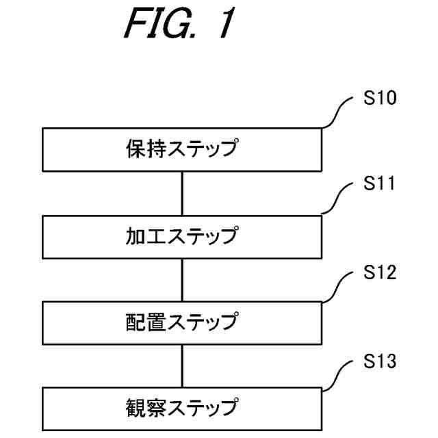 前記配置ステップ後、前記試験片の上方から前記第2ミラーに光源からの光を照射しながら、前記試験片の上方から前記第2ミラーに映る前記試験片の前記加工溝を観察する観察ステップと、を備える。