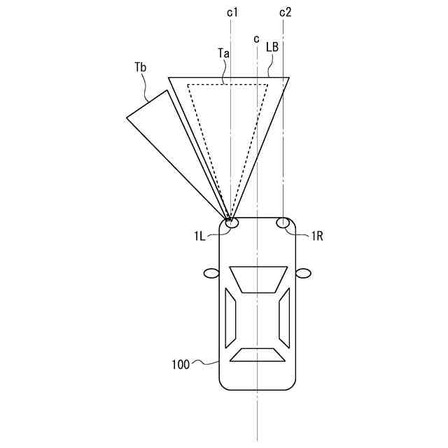 図4は、フロントターンランプ11Lの側方照射ランプ13Lによる点滅光Tbの照射される範囲を説明するための図である。