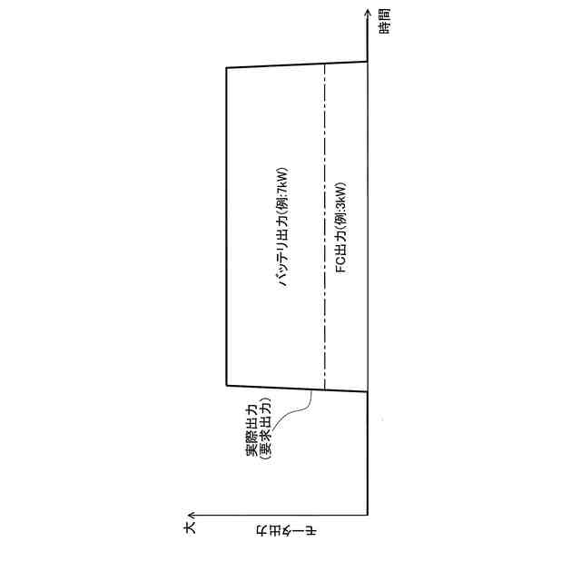 DCDCコンバータを有さないDCDCコンバータレスの燃料電池システムでは、燃料電池は、その発電時にバッテリの電圧に応じた成り行き発電を行うが、バッテリのSOC(すなわち、充電率)が高くなると発電を間欠停止する。ここで、駆動装置の要求出力がバッテリのMAX出力(すなわち、最大出力)を超えた場合には、バッテリの出力に加えて燃料電池の出力で駆動装置を駆動させる。しかしながら、このとき、燃料電池が間欠停止状態である場合には、燃料電池が成り行き発電状態に復帰するまでに燃料電池の出力に時間遅れが生じてしまう。すると、燃料電池が成り行き発電状態である場合と、燃料電池が間欠停止状態である場合とで、駆動装置の駆動の挙動に差が生じてしまう。そうすると、燃料電池システムが搭載される車両において、その加速性が安定せず、車両のユーザが不快感を覚えるおそれがある。