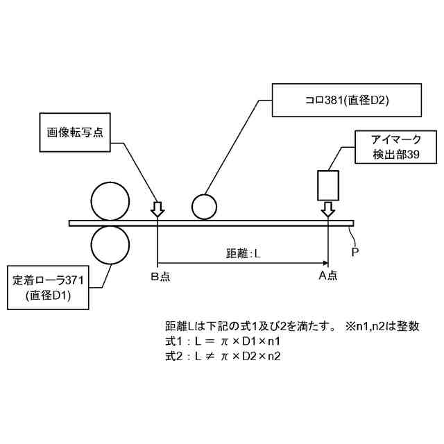 【解決手段】本開示に係る画像形成装置は、搬送部と、搬送経路中に配設され、事前に用紙P上に形成されたアイマークを検出するアイマーク検出部39と、用紙P上のアイマークの位置を基準として、用紙P上の所定位置に追い刷り画像を形成する画像形成部と、用紙Pに当接させる速度検出用のコロ381を有し、用紙Pの搬送速度を検出する速度検出部38と、を備え、アイマーク検出部39は、画像形成部が用紙P上へ追い刷り画像を形成する位置から、駆動ローラ371のローラ周長の整数倍離れた位置で、且つ、コロ381のコロ周長の非整数倍離れた位置に配設されている。