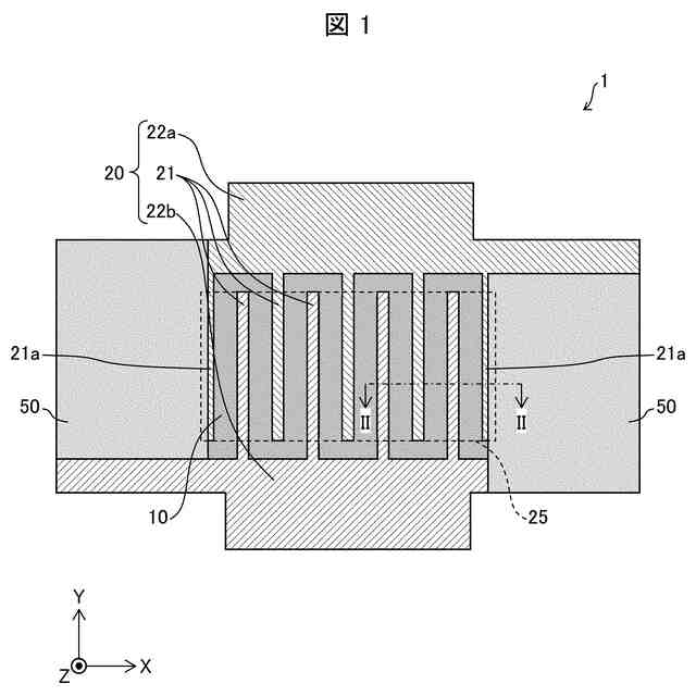 IDT電極20は、圧電体10に弾性波を励振する電極である。IDT電極20は、圧電体10が有する第1面11上に位置する。IDT電極20に交流が印加されることで、圧電体10に弾性波が励振される。