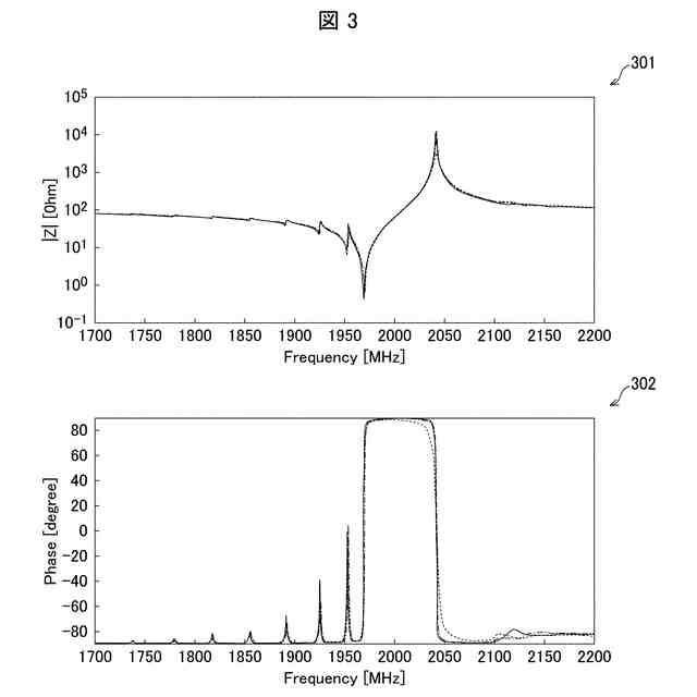 本開示の実施形態1に係る弾性波装置の特性と、支持基板が平坦な弾性波装置の特性とを例示するグラフである。