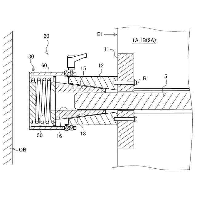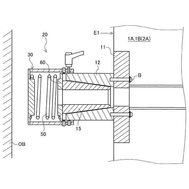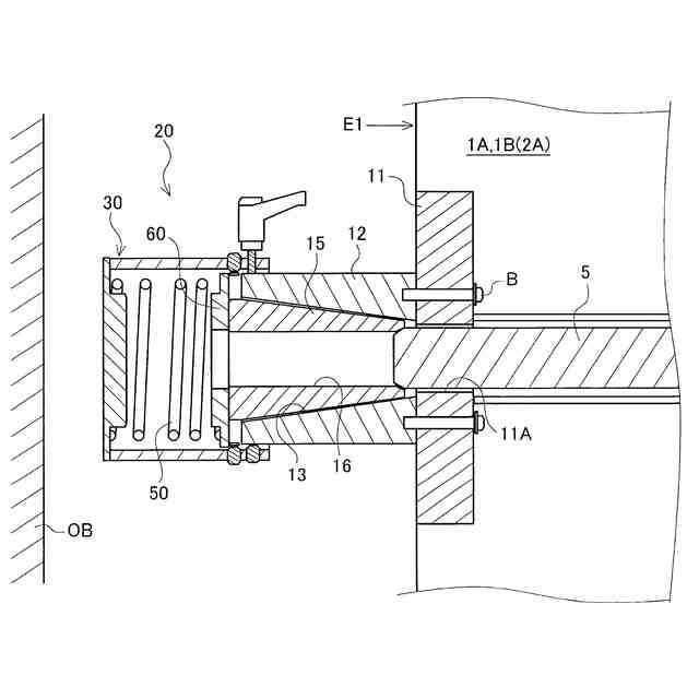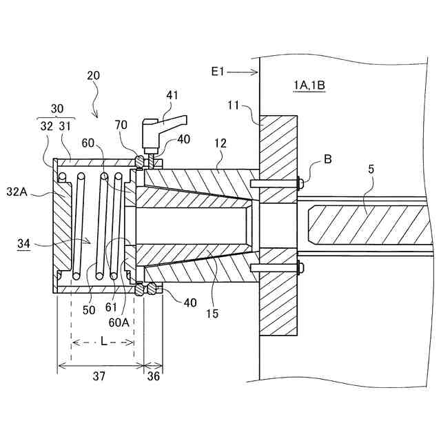 例えば、緊張材の挿入力に対してコイルバネの弾性力が大きすぎる場合には、オスコーンがメスコーンから押し出されなくなる。オスコーンがメスコーンから押し出されないと、オスコーンが拡径しないため、緊張材をオスコーンに挿入することができない課題が生じる。一方、コイルバネの弾性力が小さすぎる場合には、緊張材をオスコーンに容易に挿入することはできるが、オスコーンをメスコーン側に押し戻せなくなる。このような状態で、緊張材に緊張力を導入すると、オスコーンから必要量を突出させた緊張材が引き戻されるか、或は、オスコーンを構成する各部材がばらけることで、定着具を正しく設置できない課題が生じる。すなわち、上述の定着具設置治具を用いて定着具を効果的に設置するには、コイルバネの弾性力(バネ定数)の設定が重要となる。