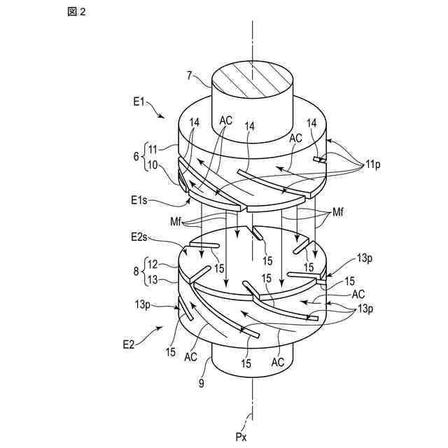 これにより、中空円筒形状の通電体は、複数のスリットによって螺旋状に分割された複数のコイル部を有して構成されている。これら複数のコイル部は、それぞれ、螺旋状の輪郭形状を成し、周方向に沿って等間隔に配置され、通電可能に構成されている。