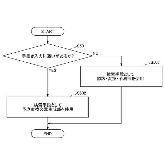 しかしながら、従来技術では、ユーザによる手書き入力の動作の変化に応じて、予測検索の方法を変えることは想定されていない。例えば、ユーザの手書き入力の動作がゆっくりとなった場合やユーザが手書き入力する文字間の距離が大きくなった場合でも予測検索の検索範囲が同じままとなることで、ユーザが手書きしたい単語が予測検索の検索範囲内で検索された結果に無いことがある。そのため、ユーザが所望する予測検索の結果を得ることができなかった。