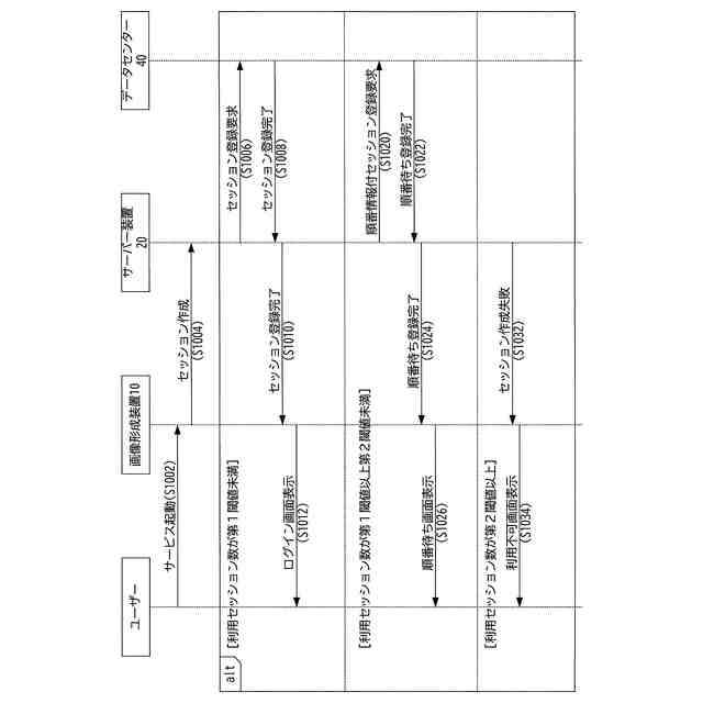 前記データセンターと前記他の画像形成装置との間で確立されているセッション数が第1の閾値以上のときは、前記データセンターに前記一の画像形成装置のセッションについて順番情報付きのセッションを登録し、