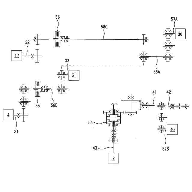 前記第1電動機(30)と第2電動機(40)の前側に、前記第1電動機(30)と第2電動機(40)の出力回転を増減速するギヤケース(50)を設け、