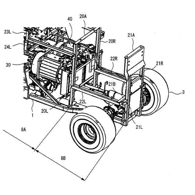 請求項4記載の発明は、背面視において、前記油圧ポンプ(51)を第1電動機(30)と第2電動機(40)よりも下方に配置した請求項3記載の作業車両である。