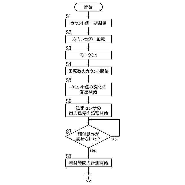 前記制御部は、前記回転量、前記変化量及び前記締付時間、の少なくとも1つに基づいて、前記締付動作が行われるように前記モータを制御する、