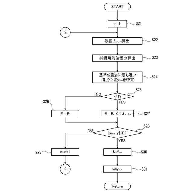 前記第二探索ステップにおいて、前記第二ずれ量が前記第二基準ずれ量より大きい場合、前記第二定在波の次数を上げて前記第二周波数を探索する、
