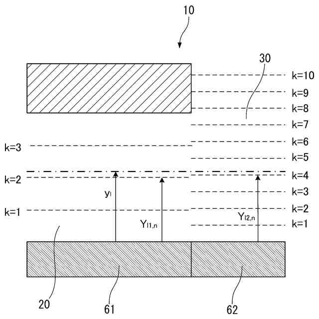 捕捉位置を節とする場合の超音波送信面から数えた節の位置に対する、超音波送受信面からの距離を示す図。