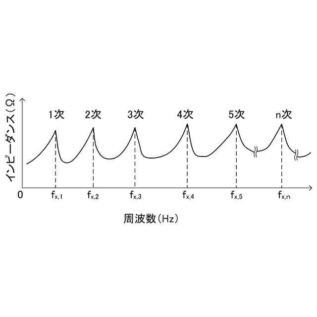 超音波素子の駆動周波数と、インピーダンスとの関係の一例を示す図。
