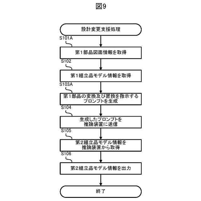 本開示では、第1部品モデル情報又は第1部品図面情報と第1組立品モデル情報とが人工知能に供給されることで、第1組立品が備える第2部品が第1部品に置換された設計変更後の組立品である第2組立品の3次元モデルを表す第2組立品モデル情報が生成され、生成された第2組立品モデル情報が出力される。従って、本開示によれば、部品の置換を伴う組立品の設計変更を支援することができる。