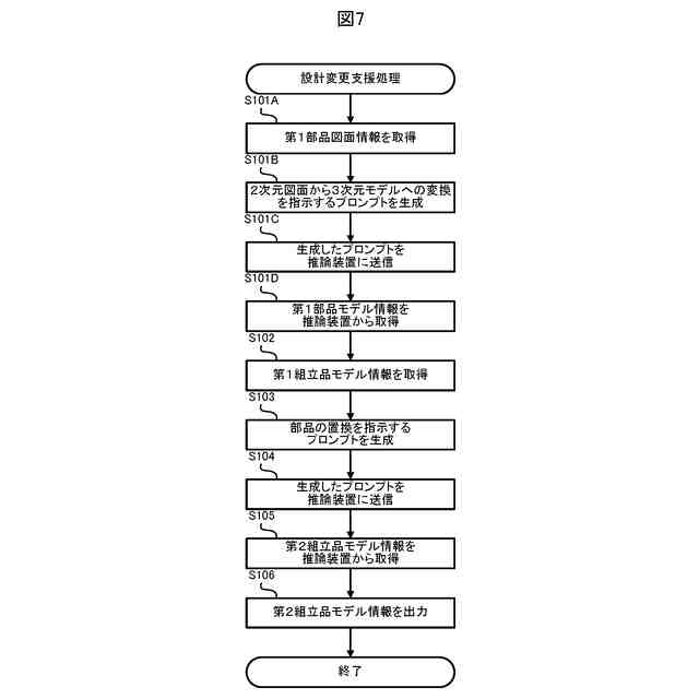 【解決手段】部品情報取得部111は、第1部品の3次元モデルを表す第1部品モデル情報又は第1部品の2次元図面を表す第1部品図面情報を取得する。組立品情報取得部112は、設計変更前の組立品である第1組立品の3次元モデルを表す第1組立品モデル情報を取得する。情報処理部113は、部品情報取得部111が取得した第1部品モデル情報又は第1部品図面情報と組立品情報取得部112が取得した第1組立品モデル情報とを人工知能に供給することで、第1組立品が備える第2部品が第1部品に置換された設計変更後の組立品である第2組立品の3次元モデルを表す第2組立品モデル情報を生成し、生成した第2組立品モデル情報を出力する。