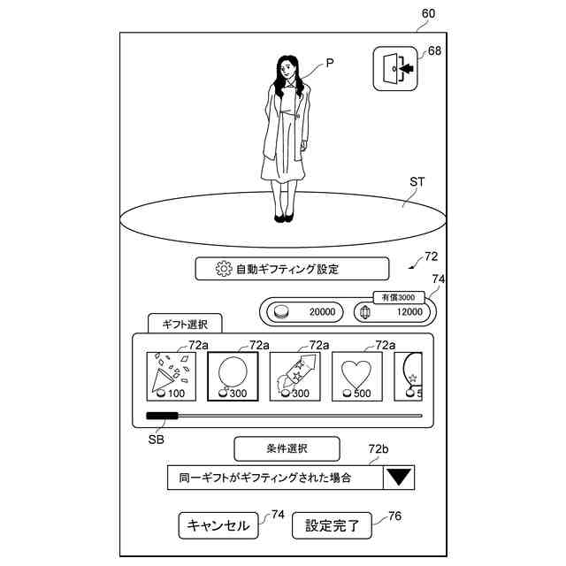 また、本発明の第二態様では、前記ギフティング条件は、前記演者オブジェクトによる前記動作が開始又は終了したことを含む。