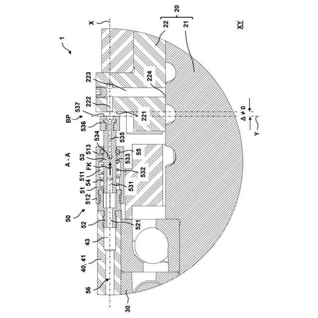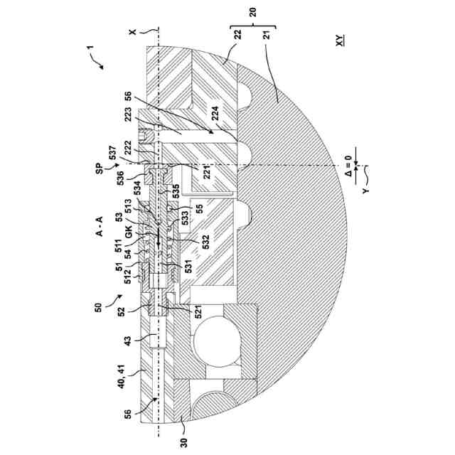 前記潤滑化ユニット(50)が、スリーブ(51)、管路要素(53)、及びばね要素(54)を備えること、前記スリーブ(51)が、内部(511)を備え、前記管路要素(53)の第1の端部及び前記ばね要素(54)が、前記内部(511)内に配置されること、前記管路要素(53)の前記第1の端部が、少なくとも1つの密閉表面(533)を備えること、並びに、前記ナット(22)が前記潤滑位置(SP)に移動されていない限り、前記ばね要素(54)が、前記内部(511)において前記スリーブ(51)に逆らってばね力(FK)で前記密閉表面(533)に機械的に予張力をかけて前記潤滑化ユニット・チャネル(521、531、532、534、535)における連通を潤滑剤が漏れないようにして遮断するように設計されていることを特徴とする、請求項1に記載の潤滑化ユニット(50)。