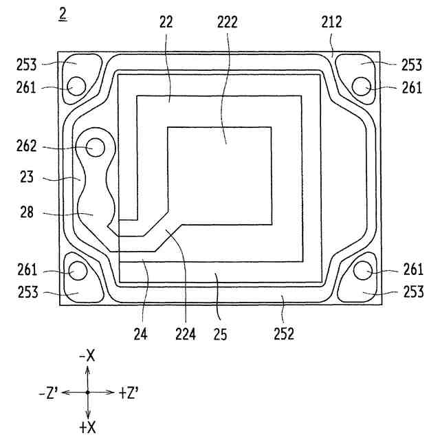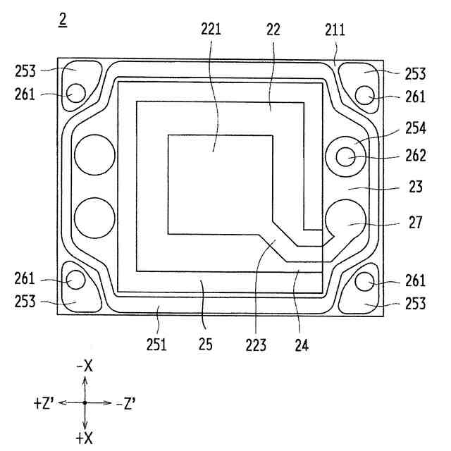 従来、振動板に封止板を積層して一体化し、金属バンプを用いてICチップなどの電子部品素子を接続してなる積層型の圧電振動デバイスがある(例えば、特許文献1参照)。詳細には、振動部および該振動部の外周を取り囲む外枠部を備える圧電基板の一主面を第1封止部材により覆って振動部を封止するとともに、圧電基板の他主面を第2封止部材により覆って振動部を封止し、第1封止部材および第2封止部材の少なくとも一方に電子部品素子が接続される外部電極を設け、電子部品素子を、平面視において圧電基板の外枠部の一部または全部と重畳する6つの位置で金属バンプを用いて封止部材の外部電極に接続し、圧電振動デバイスが形成される。