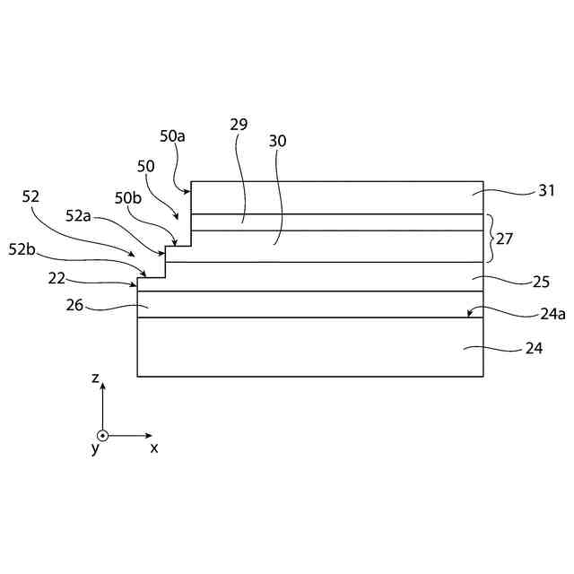 本開示の一実施形態によるHEMTの第1の部分を側断面図で概略的に示す。