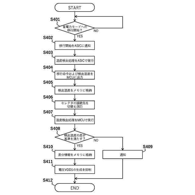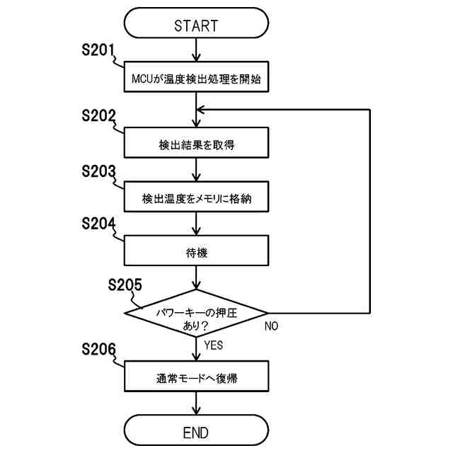 省電力モードにおいて温度検出処理を実行するためのフローチャート。