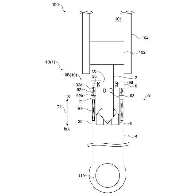 前記第1当接面を前記第1のロッドの前記第1先端面に当接させ、且つ前記第2当接面を前記第2のロッドの前記第2先端面に当接させながら、前記可動片を前記径方向に移動させることで、前記第1のロッドを前記第1のロッドの延在方向に移動させるように構成されている押込部材と、