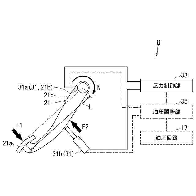 ペダルの操作位置が所定の範囲に入る場合と、所定の範囲から逸脱した場合とを操作者に認識させる車両用アクセルペダル反力制御装置が知られている。車両用アクセルペダル反力制御装置は、アクセルペダルの反力を発生する反力発生手段と、アクセルペダルの操作量に対して反力を設定する反力制御手段を有している。