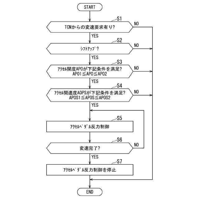 本発明の実施形態に係る自動変速機システムによるアクセルペダル反力制御の処理手順の一例を示すフローチャート。