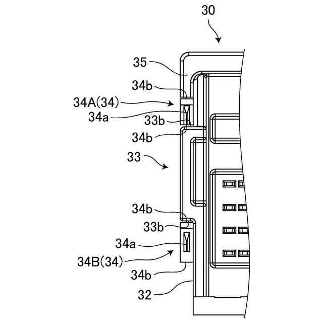 ところで、斯様なコネクタにおいては、アウタハウジングでインナハウジングを支えることによって、外力に起因する回路基板と端子金具の間の接続部への負荷を軽減し、その間の接続状態を保っている。例えば、上記特許文献1のコネクタにおいては、コネクタ挿抜方向で隙間が空けられた一対のフランジをインナハウジングに設け、その隙間に挿入させる突出部をアウタハウジング部材の内壁面に設けている。そして、このコネクタにおいては、一方のフランジに複数の潰しリブを設け、組付け方向に沿って挿入されてきた突出部に潰しリブを押し潰させることによって、アウタハウジングでインナハウジングを支えている。このコネクタは、その組付け方向を型抜き方向とする一対の金型で成形されるインナハウジングであれば成立する。しかしながら、そのインナハウジングは、コネクタ挿抜方向を型抜き方向とする一対の金型を用いて成形することができない。