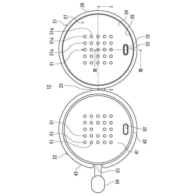 前記開状態で前記パフを前記下側パフ収納部の中央に配置した場合に、前記下側パフ収納部の内周と前記パフの外周との間には隙間が形成され、