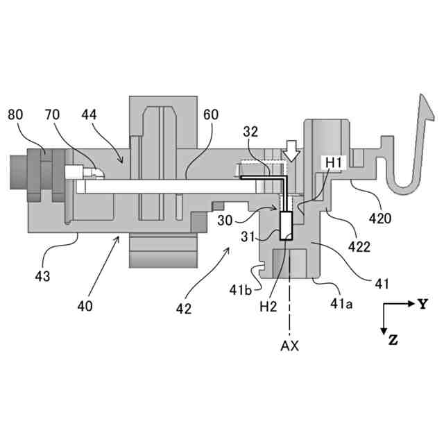 前記軸部と、前記軸部が挿入された前記ホルダの後方に位置し、前記ホルダが配置されるホルダ配置部と、を有するケースと、