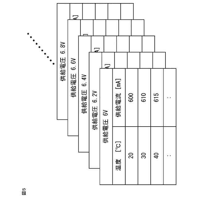 実施の形態2による車載通信装置の信号調整器およびインターフェース機器の供給電流と各機器の温度の関係を記憶するデータ記憶部のデータの一例を示す図である。
