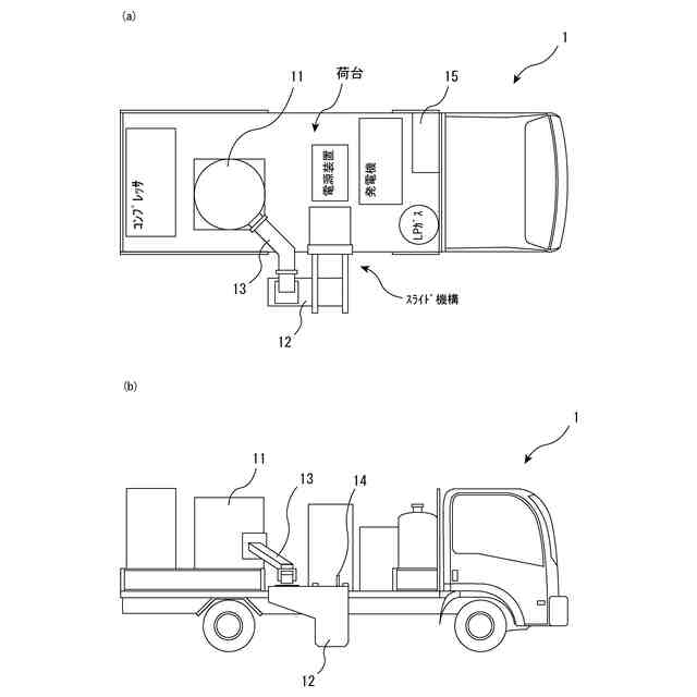 この特許文献1には、上記路面区画線設置機械が、路面を移動するトラックと、このトラックに取り付けられ路面に区画線を塗布するペイント塗布機と、トラックの荷台に搭載されペイント塗布機で使用する塗料を備蓄するペイント溶融装置と、このペイント溶融装置からペイント塗布機へ塗料を供給するペイント供給シャッターおよびペイント供給樋と、を備えることが記載されている。