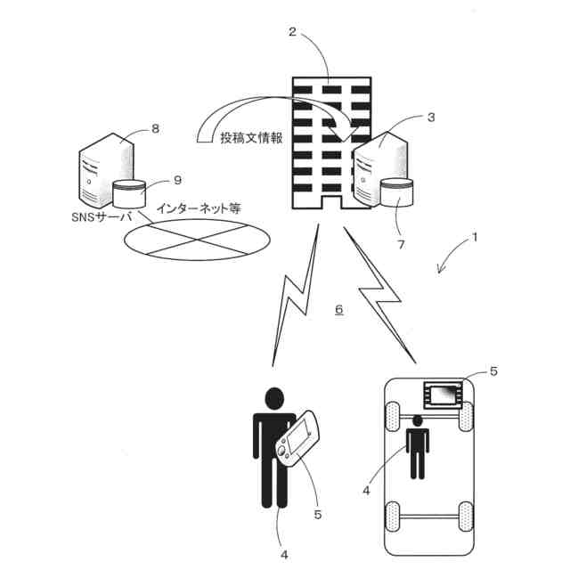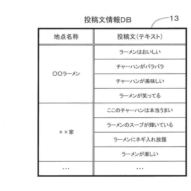 投稿文情報DBに格納される投稿文情報の一例を示した図である。