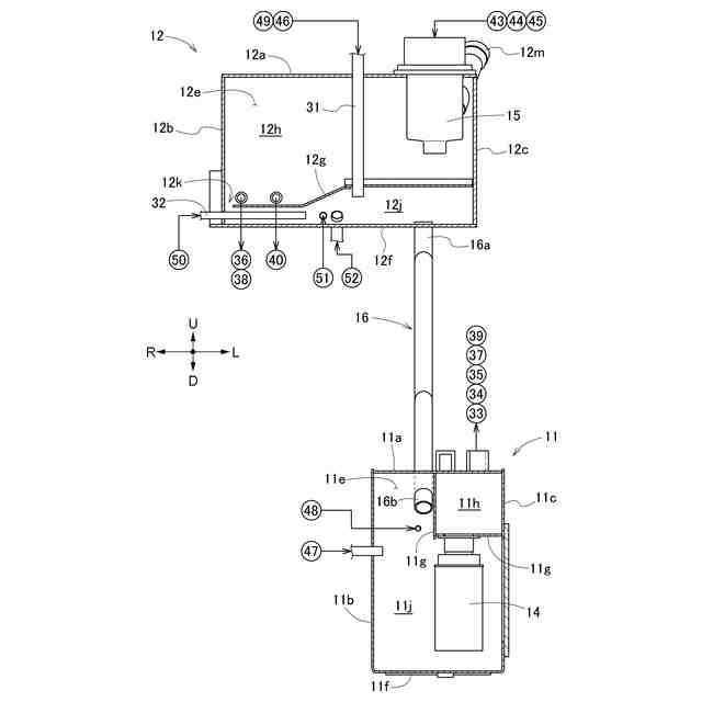 前記第2貯留部は、前記第2貯留部の内部を上部領域と下部領域とに仕切る壁部材と、前記上部領域と前記下部領域とを連通させる連通路とを有し、