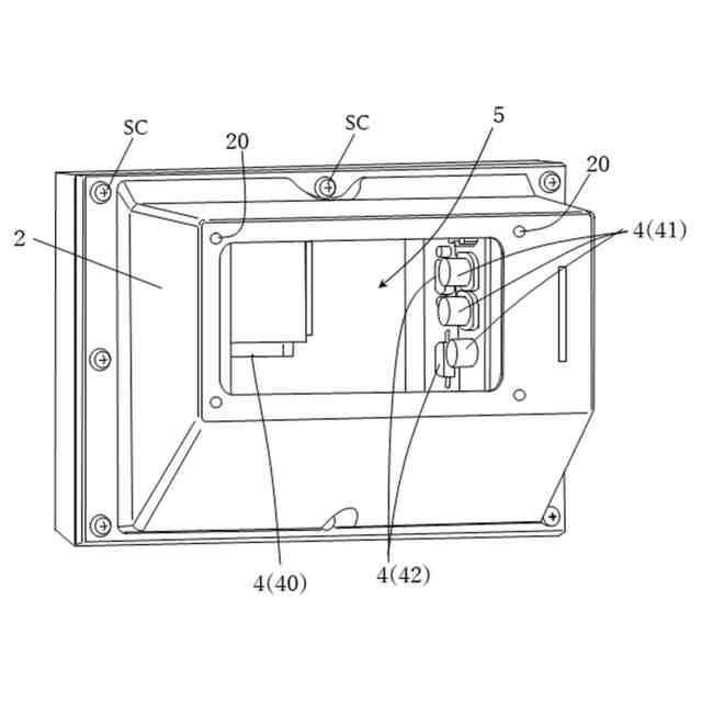 収納部背面から分離された蓋部の貫通孔には、例えばゴムブッシュやグロメットが装着されたケーブルが挿通されて貫通孔が塞がれる。そして、開口部から収納部内に手を入れてケーブル端子を差込口に差し込む。このとき、差込口から蓋部までのケーブル長さは、手が開口部に入る程度まで伸びているから、その状態で蓋部を開口部に被せて収納部内を密閉すると、収納部内に納められたケーブルは、垂れた状態から、ケーブル端子が水平方向又は水平方向よりも傾いた状態で差込口に接続される。そのため、防水対策をしていない場合に、ケーブルを伝って収納部内に水が浸入したとしても、ケーブル端子は、ケーブルの最下端位置よりも高い位置で差込口に水平方向から接続されるため、差込口への水の浸入が阻止される。