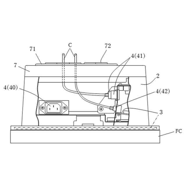 前記貫通孔から前記収納部内に導入される前記ケーブルが前記差込口と接続された状態において、前記ケーブルの接続端が水平方向又は水平方向よりも傾いた状態で前記差込口に接続されることを要旨とする。