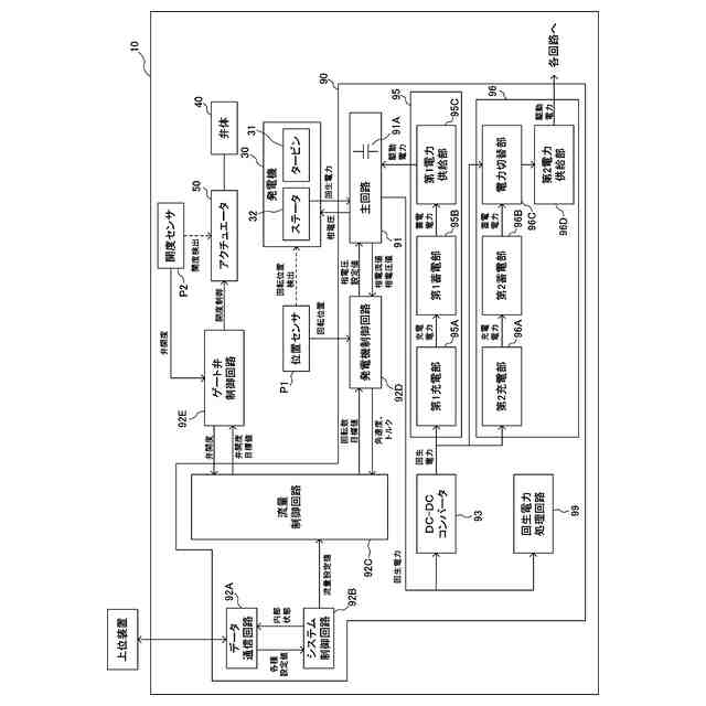 図1に示すように、本発明の一実施形態に係るタービン式流量制御装置10は、流路管20と、発電機30と、弁体40と、アクチュエータ50と、制御ユニット90を備える。