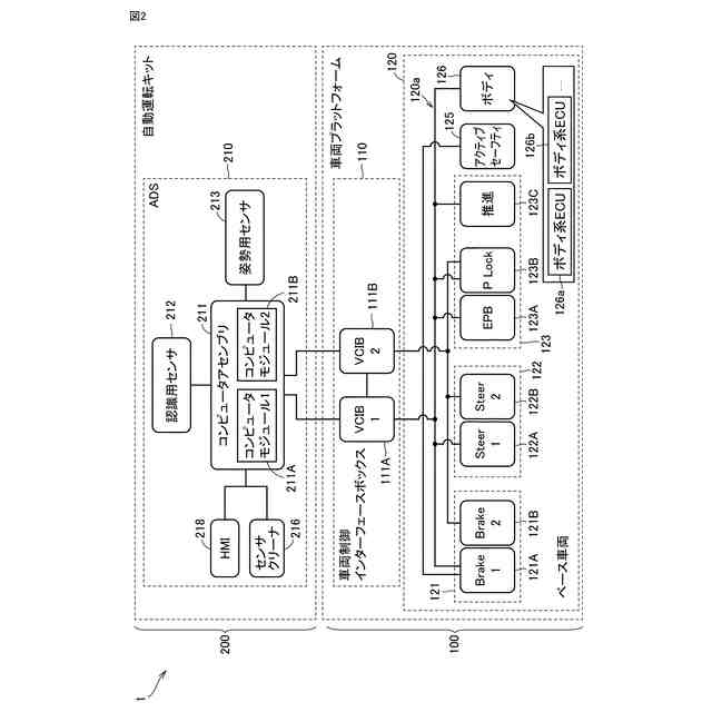 前記車両プラットフォームは、複数の制御装置を含むベース車両と、前記車両プラットフォームと前記自動運転システムとの間のインターフェースを行う車両制御インターフェースとを含み、