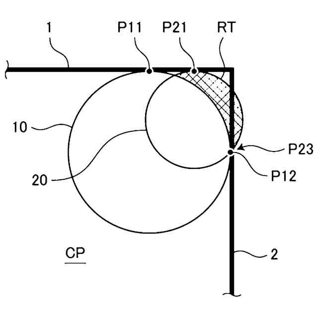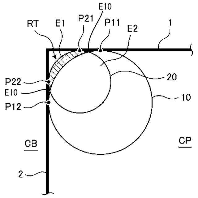 相対的に小さい直径の第2環状切断溝を、当該隅部を構成する第1切断溝に内接するとともに、当該隅部を構成する第2切断溝と交わるように形成し、