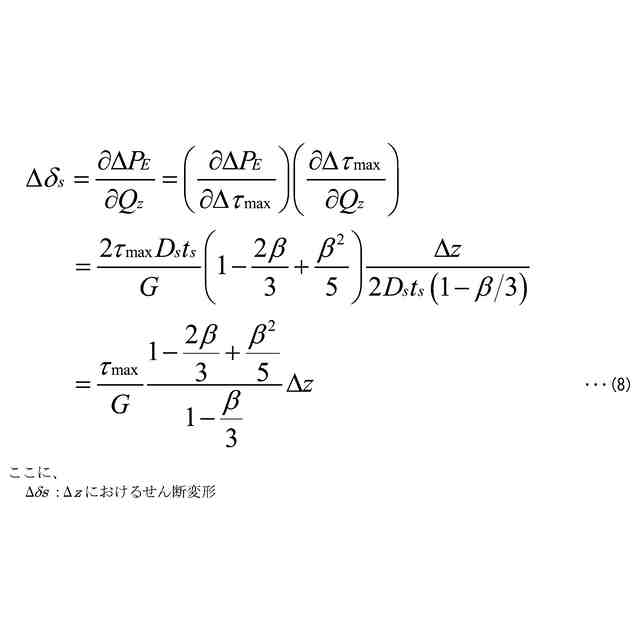 として、式(A)のように表し、せん断変形角γを式(B)で表し、式(A)よりβを求め、これを式(B)に代入してγを算出した後、Δzにおけるγを接合鋼管高さH