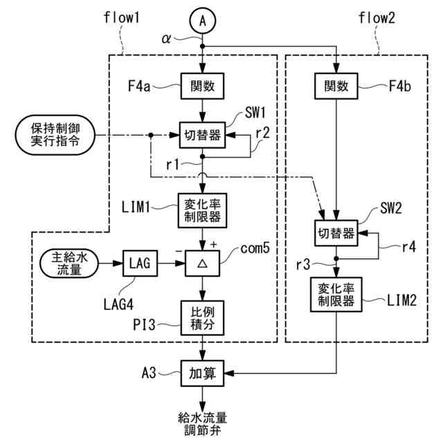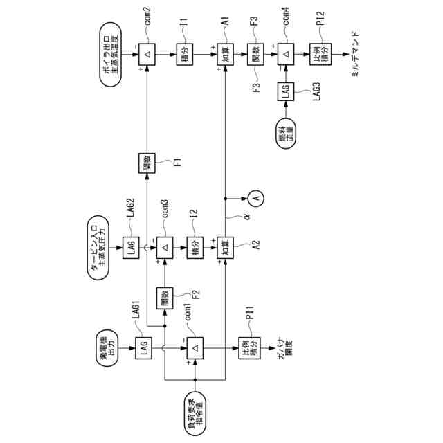 特許文献1には、ボイラのフィードバック制御において、主蒸気圧力偏差に応じて燃料流量を設定する際に、主蒸気温度偏差に応じて燃料流量の設定を調整することが開示されている。同様に、主蒸気温度偏差に応じて給水流量を設定する際に、主蒸気圧力偏差に応じて給水流量を設定することが開示されている。すなわち、特許文献1に開示のフィードバック制御は、主蒸気圧力と主蒸気温度の各制御系統間での干渉を調節することが開示されている。