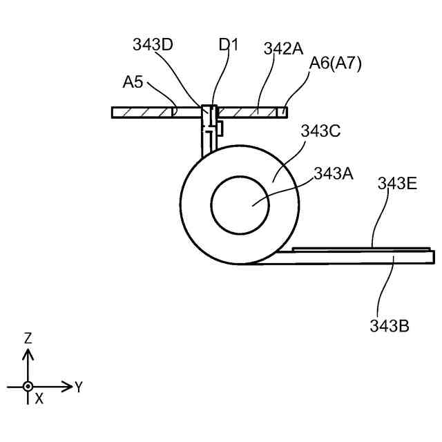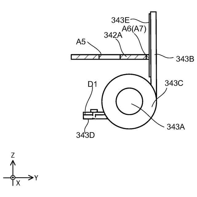 前記切替部は、前記回動軸の前記回動部材が配置された部分と、前記伝達ギヤが配置された部分とを接続状態および非接続状態の何れかに切り替える、