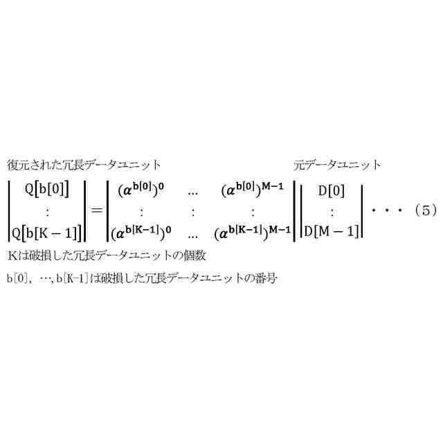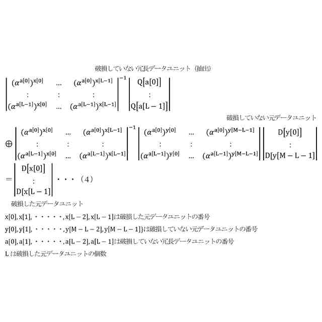データーの復元は、例えば、以下のように元データDを複数(n個)の部分データに分割し、ガロア体と呼ばれる有限体からk個の線形独立なベクトルα